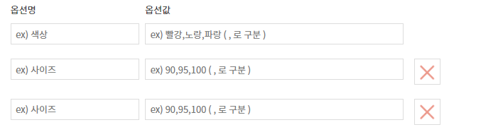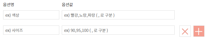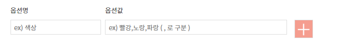 맨 처음, 옵션 항목(또는 파일 업로드 input값)이 하나일 때는 아래와 같이 + 버튼이 표시되도록 한다.