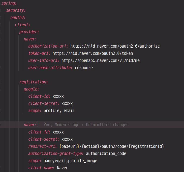 구글과 달리, 네이버는 Spring Security를 공식적으로 지원하지 않아서, Common-OAuth2Provider에서 알아서 해주던 설정을 따로 추가해줘야 한다.