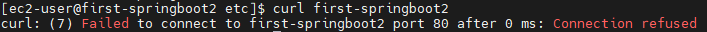 해당 에러메세지는 hostname에서 아직 80포트로 실행된 서비스가 없으므로 뜨는 메세지이다.