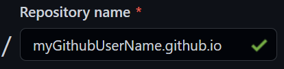레포지토리 이름을 {내 깃허브 닉네임.github.io} 로 설정해서 생성하면 성공적으로 github pages가 생성된 것이다.