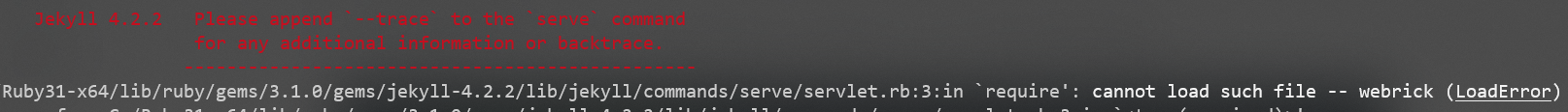 webrick을 찾을 수 없어서 나는 오류이다.