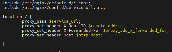 $service_url은 /etc/nginx/conf.d/service-url.inc 파일에서 가져오게끔 구성하였다. 이를 위해 아래와 같이 include 하는 문구를 추가했다.